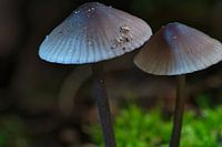 Koop de foto Delicate paddenstoelen filigraan op de bosgrond van Martin Köbsch op canvas, aluminium dibond, (ingelijste) fotoprint, behang en ArtFrame, op maat geprint in Fine-Art kwaliteit.