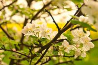 Delicate witte appelbloesem op de tak van een appelboom. Prachtige bloesem in close-up van de lente.