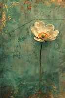 Dit prachtige kunstwerk toont een delicate witte bloem tegen een verweerde, groenachtige achtergrond met gouden accenten. De combinatie van de gedetailleerde bloem en de ruwe, textuurvolle achtergrond zorgt voor een intrigerende balans tussen kwetsbaarheid en robuustheid. Perfect voor een stijlvolle slaapkamer of een rustgevend kantoor, dit ontwerp brengt een vleugje natuur en verfijning in elke ruimte. De subtiele kleuren en het minimalistische thema maken het een veelzijdige decoratie die zowel in moderne als klassieke interieurs past. Voeg een vleugje natuurlijke schoonheid toe aan je huis met dit unieke en betoverende kunstwerk.
