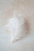 Een sneeuwwitte veer ontvouwt zich delicaat en elegant, als een vluchtige gedachte in de wind. De fijne, golvende structuren geven het een gratie die uitnodigt om te dromen. Op de zachte, crèmekleurige achtergrond lijkt ze bijna surrealistisch en benadrukt ze de lichtheid van het moment - een symbool van vrijheid en onschuld.