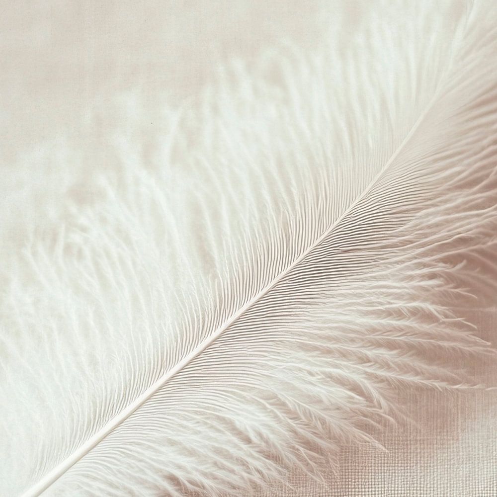 Zo zacht als een briesje uit de hemel ligt de sneeuwwitte veer op een delicate, bijna etherische achtergrond. De filigraanuiteinden lijken te fluisteren, terwijl ze de stille elegantie van lichthartigheid belichamen. Als symbool van lichtheid en vrijheid straalt het een bijna magische aantrekkingskracht uit die je uitnodigt om te dromen.