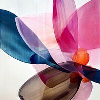 Kleurrijk minimalistisch kunstwerk met een grote abstracte bloem op een papieren textuur.