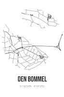 Zwart-witte landkaart, stratenplan of plattegrond van Den Bommel. Den Bommel is gelegen in de gemeente Goeree-Overflakkee, provincie Zuid-Holland. Op de stadskaart zijn alle openbare wegen in Den Bommel opgenomen. Verder is de kaart voorzien van de coördinaten van het centrum van Den Bommel.