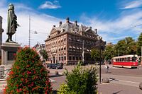 Straat voor het binnenhof in den haag met en tram in de achtergrond.
