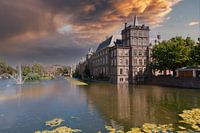 Binnenhof Den Haag met de vijver ervoor en een mooie lucht erboven ,