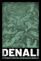 De berg Denali in Alaska als topografische kaart. Grunge-ontwerpkaart met hoogtelijnen. Stijlvolle print voor wandelaars, klimmers en outdoorfans - ook als cadeau-idee!