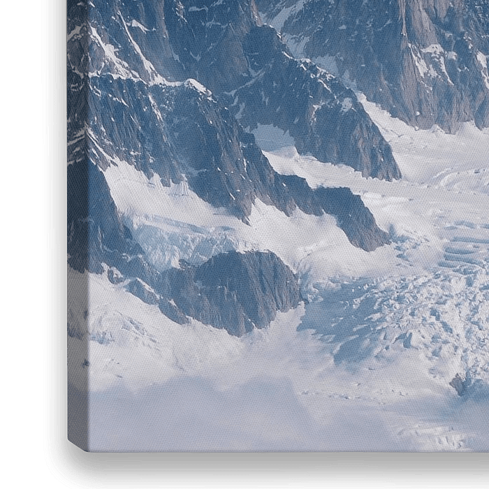 De berg Denali in Alaska gezien vanuit de lucht. Deze berg is de hoogste van Noord Amerika en ligt in een landschap van wildernis en gletsjer.