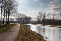 Dit landschapstafereel van de Dendervallei toont de vredige schoonheid van de Dender in Idegem, vlakbij Geraardsbergen in Oost-Vlaanderen, België. De zachte wintertinten van het landschap vermengen zich harmonieus met de lichtblauwe lucht. De kronkelende rivier meandert door het winterlandschap en creëert een gevoel van rust en kalmte dat typisch is voor het platteland in het Vlaamse Pajottenland.