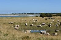 Het noordelijkste puntje van het Deense eiland Funen op z’n Deens genaamd ‘Fyns Hoved’. Op de foto het natuurgebied met schapen als keien en keien als schapen.