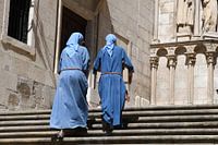 Tijdens een zomervakantie in Noord Spanje (2025), belandden we in Burgos. Deze fraaie stad is onder meer bekend van haar prachtige grote kathedraal. Al zittend op de trap viel mijn oog op de 2 nonnen in denim gewaden.