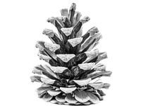 een studio opname van een Dennenappel. deze is is zwart wit omgezet,.