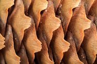 Close-up beeld van een dennenappel. De schubben hebben een gelijkmatige patroon en een mooie natuurlijke kleur.