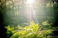 Dennenbomen in een bos tijdens een mooie herfstdag in het natuurgebied de Veluwe in Gelderland, Nederland.