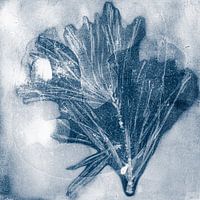 Monotype (monodruk). Botanisch, Scandinavisch, minimalisme, wabi sabi, eenvoud, indigo, natuur, grafisch, illustratie, Japan, eigentijds