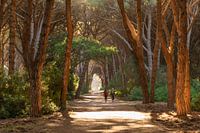 Dennenbos in het avondlicht, Reserva Naturale Dana Feniglia, Grosseto, Toscane, Italië