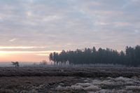 De dag ervoor was er uitzonderlijk de volledige dag een dichte mist. Door de vriestemperaturen 's nachts is deze mist aan de vegetatie vastgevroren, met een witte laagje ijs tot gevolg. Combineer dit met een wolkendek dat door de zonsopkomst…