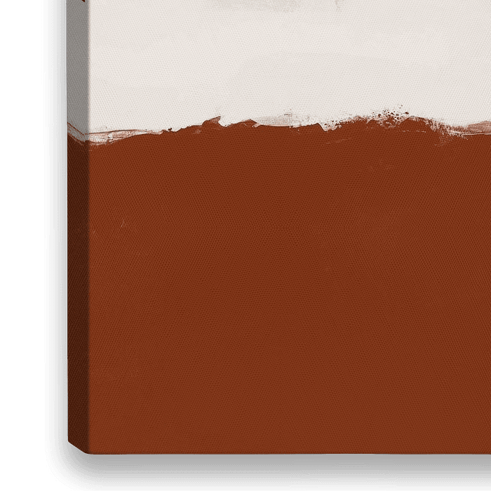 English: A piece full of childlike wonder and surrealism. The upper half features expansive beige tones with scribbled graffiti, while the lower half is grounded in a deep terracotta base. Splashes of turquoise and russet doodles suggest an improvised artistic exploration, capturing innocence and curiosity.
