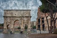 der Konstantinsbogen unmittelbar am römischen Kolosseum, ein imposanter Trimphbogen aus dem antiken Rom