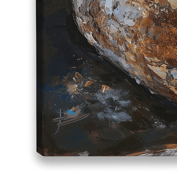 Desembrood - Dit schilderij presenteert een boeiend close-up portret van een knapperig brood, vastgelegd in een expressieve stijl die de textuur en kleurnuances prachtig benadrukt. De kunstenaar gebruikt dikke, royale penseelstreken en een rijk kleurenpalet dat varieert van warme goud- en bruintinten tot diepe schaduwen, waardoor het schilderij een rustieke en bijna tastbare kwaliteit krijgt die zeker elke ruimte zal verwarmen.