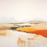 De kleuren variëren van zachte beige tot diepe oranjetinten, wat een gevoel van de warmte en het uitgestrekte karakter van een woestijn bij zonsondergang oproept.