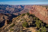 In het Grand Canyon National Park kijk je vanaf Desert View in de South Rim de Grand Canyon in en zie je de Colorado rivier meanderen door de kloof. Het park ligt in de staat Arizona.