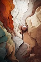 Abstracte kunst in warme brons en aardetinten met een grove textuur.