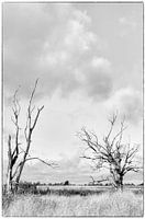 De Oostvaardersplassen zijn een uniek stukje natuur in Nederland. Op mijn wandeling onlangs, viel het mij op dat een bepaald gedeelte flink aan het veranderen is. Bomen zijn verdwenen en het lijkt net of er een soort verwaarlozing van het landschap is. Het desolate gevoel nam bij mij toe met hier en daar een dode boom en groepen ganzen die een ander gebied opzoeken alsof hier geen of te weinig voedsel te vinden is. Dit neemt niet weg dat er een bijzonder grafisch landschap te zien is en dat leg ik graag vast met mijn camera. Door de zwart-wit bewerking verstek ik dat effect.