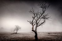 Eenzame bomen in de Loonse en Drunense Duinen tijdens de winter