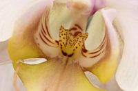De binnenkant van een orchidee gefotografeerd met een macrolens.