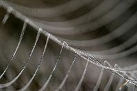's Ochtends vroeg gefotografeerd op het Gastels Laag. Door een koude nacht waren er dauwdruppels achtergebleven op dit spinnenweb. Van heel dichtbij vastgelegd lijkt het net een parelketting.