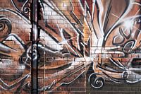 Detail van een graffiti op de muur van een fabrieksgebouw op een reeds gesloopt bedrijfsterrein. Ik maak zelf graffiti, of fotografeer interessante details van deze efemere kunst tijdens mijn zwerftochten door mijn geboortestad Maagdenburg.