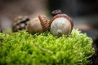 Detail van eikenboom vruchten in het mos van Fotografiecor .nl