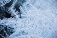 Een detail (macro foto) van ijskristallen in het ijs van een bevroren rivier bij de Lyngen Alpen in Noorwegen.