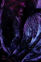 Macro-opname van een rode kool beeldvullend gefotografeerd met dauwdruppels. Een spel van donkerpaarse en blauwe kleuren, structuren en licht.