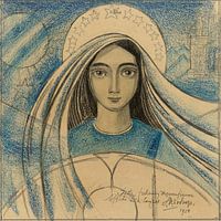 Detailontwerp van een vrouwenhoofd voor een affiche voor het Internationaal Eucharistisch Congres gehouden te Amsterdam van 22-27 juli 1924