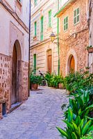 Detailopname van oude stenen traptreden in mediterraan rustiek dorp, Mallorca, Balearen, Balearische Zee, Middellandse Zee, Spanje