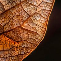 Een delicaat kunstwerk uit de natuur ontvouwt zich in warme, aardse tinten. De fijne nerven en het delicate netwerk van lijnen vertellen verhalen van groei en verval, terwijl het licht zachtjes over het verfrommelde oppervlak danst. Elk detail getuigt van de vergankelijkheid van het leven en de schoonheid die zelfs in de dood verborgen ligt.