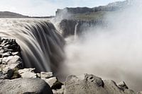 Dettifoss is a waterfall in Jökulsárgljúfur National Park of Northeast Iceland, not far from Mývatn. It is situated on the Jökulsá á Fjöllum river, which flows from the Vatnajökull glacier and collects water from a large area in Northeast Iceland. The falls are 100 m wide and have a drop of 44 m down to the Jökulsárgljúfur canyon. It is the largest waterfall in Europe in terms of volume discharge, having an average water flow of 200 m3/s.