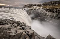 De Dettifoss, de krachtigste waterval van West-Europa. Vanaf de oostzijde bied deze waterval een spectaculair uitzicht. De waterval stroomt door de Jökulsá á Fjöllum. Het deel bij de Dettifoss wordt vaak de Grand Canyon van Europa genoemd.