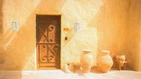 In het hart van de oude stad van Dubai vond ik deze deur — stil, verweerd, maar trots. De muur ademt de hitte van de dag; het okergeel glanst als zonlicht dat is blijven hangen. De deur zelf, donkerbruin en getekend door de tijd, lijkt verhalen te bewaren van generaties die hier hebben geleefd.