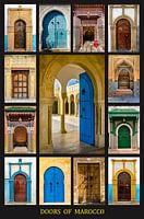 Collage van verschillende indrukwekkende en kleurrijke oosterse deuren en portalen in Marokko in Rabat in Marrakech Fes en Tanger