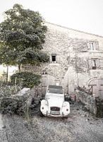 Oldtimer in het Franse Saignon (Luberon). Deze Deux Chevaux stond in een Frans dorpje bij een oud gebouw. De sepia-achtige kleur van de foto maakt dat de auto beter uitkomt.