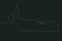 modern lijnenspel van de skyline van Deventer, met bekende elementen zoals de Lebuïnuskerk, de brug en de mooie huizen aan de kade.