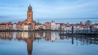 Vanaf het pondje aan de overkant heb je een prachtig uitzicht op Deventer met natuurlijk de markante toren van de Lebuinuskerk die er mooi bovenuit steekt.