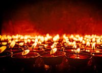 Koop de foto Devotie offerlichtjes in een tempel. van Ron van der Stappen als print op canvas, aluminium dibond, (ingelijste) fotoprint, behang en ArtFrame. Voor jou op maat geprint in Fine-Art kwaliteit.