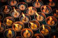 Devotie lichtjes, (offerlichtjes) in een tempel in Kathmandu, Nepal.