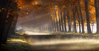 Nederlands Herfst Landschap in de ochtend met kanaal, zon en mist