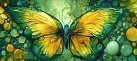 Details: vlinder, kleurrijk, modern, kunst, abstract, geel, groen, waterdruppels, natuur, levendig