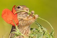 Grondeekhoorn uit Oostenrijk. Deze diertjes hebben een grote aaibaarheidsfactor en zijn erg nieuwsgierig. Ze zijn verzot op bloemen, niet zozeer om in een vaasje te zetten maar wel om op te peuzelen...