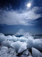 Ik had geluk: ruwe zee en veel ijsblokken op het zwarte strand. Ik moest uitkijken voor de naderende golven en op tijd wegrennen om mijn cameraspullen te redden! En natuurlijk met natte voeten...